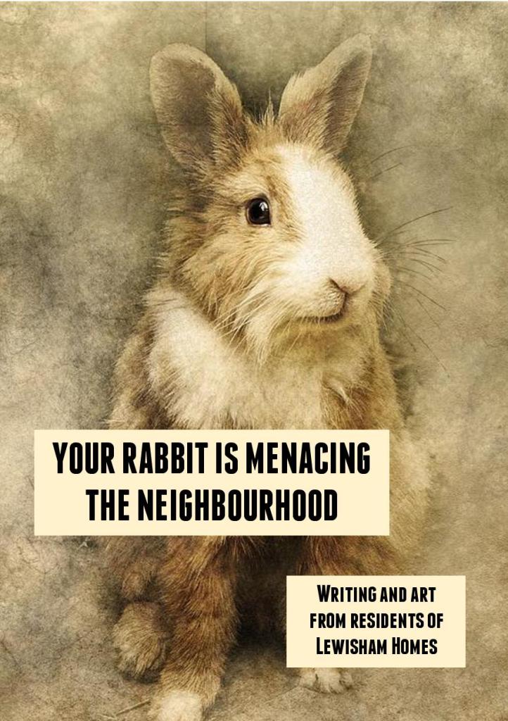 The Albany’s Meet Me At… programme provides a programme of creative and social activities for people aged 60+. In 2018-19 I was a lead artist on one of these projects in supported accommodation – over twelve weeks, we did a wide range of activities combining writing with the participants’ interest in crafts, drawing, games, and more. At the end of the project, I put together Your Rabbit is Menacing the Neighbourhood, a book which included writing and art from all of the people who had been involved in the project. The title comes from one of the stories – you’ll just have to read it to find out what happened…